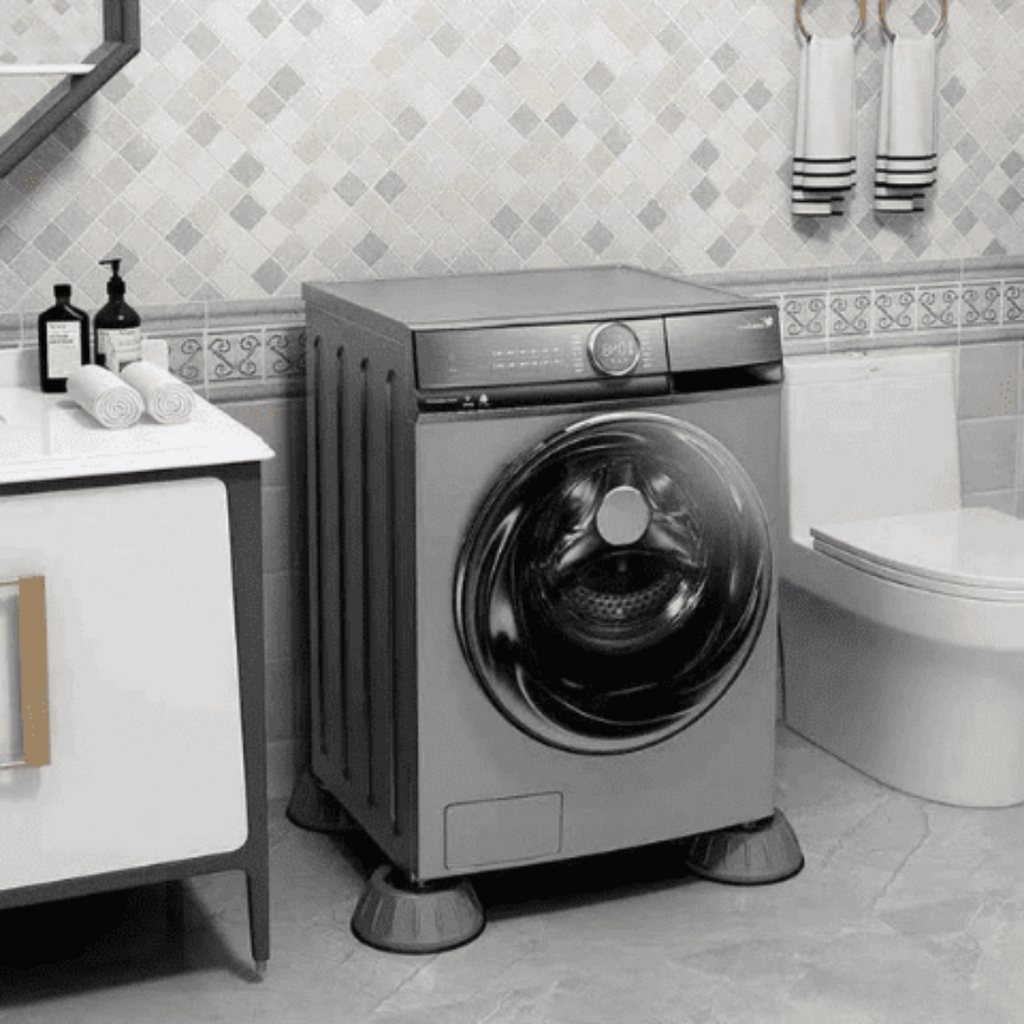 Contém camada antiderrapante que fixa muito bem no chão, trazendo proteção sua a maquina de lavar.